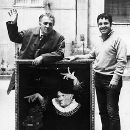 Fellini recibe un óleo, como homenaje del pintor Carlangelo, tras terminar el rodaje de ‘Roma’ (foto).
