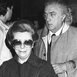 Fellini, ya de 70 años y con su salud desmejorada, camina con su mujer. Fue una de sus últimas apariciones en público.
