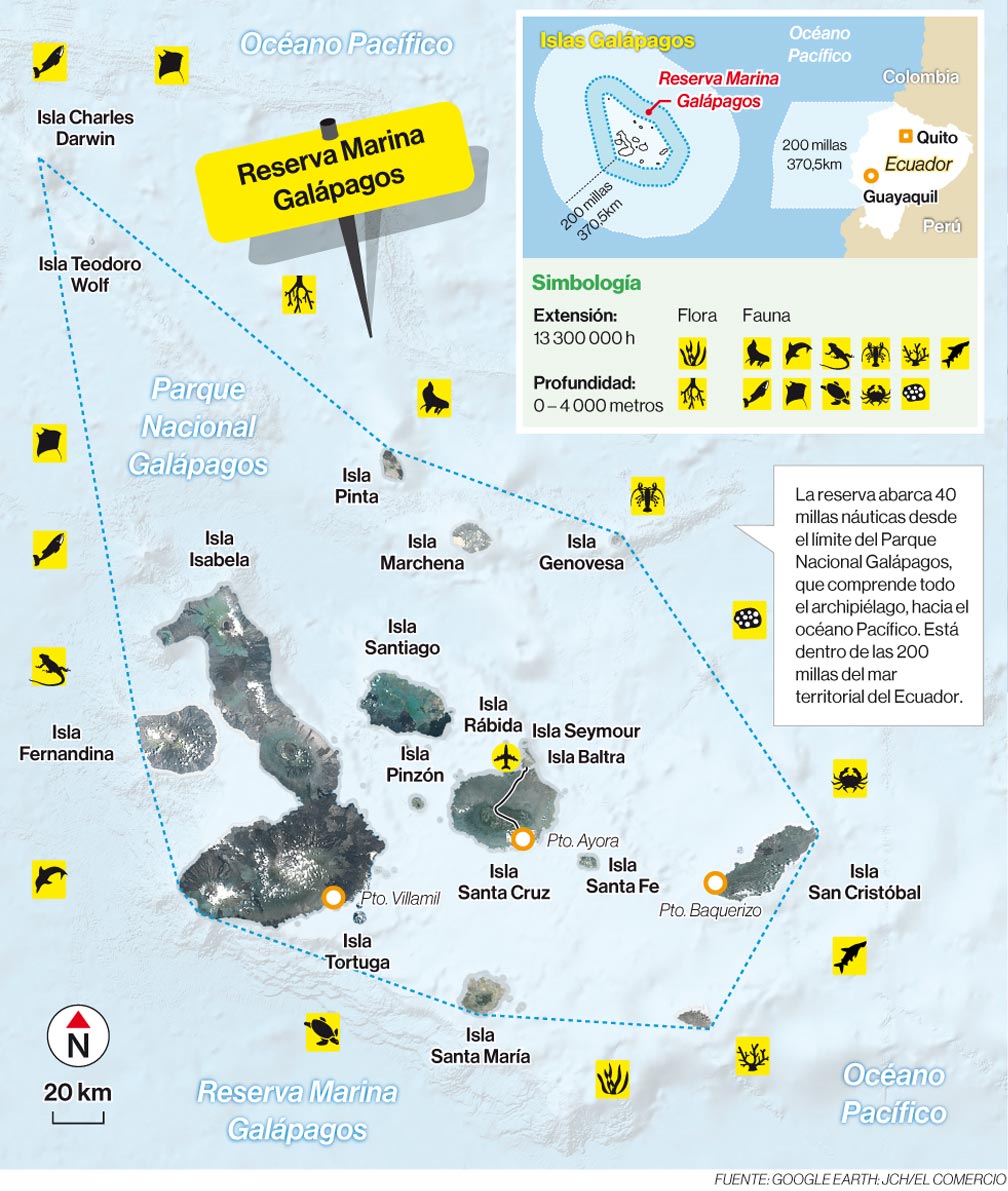 Reserva Marina Galápagos La riqueza de las aguas que rodean a la región insular permite la existencia de más de 3 000 especies.